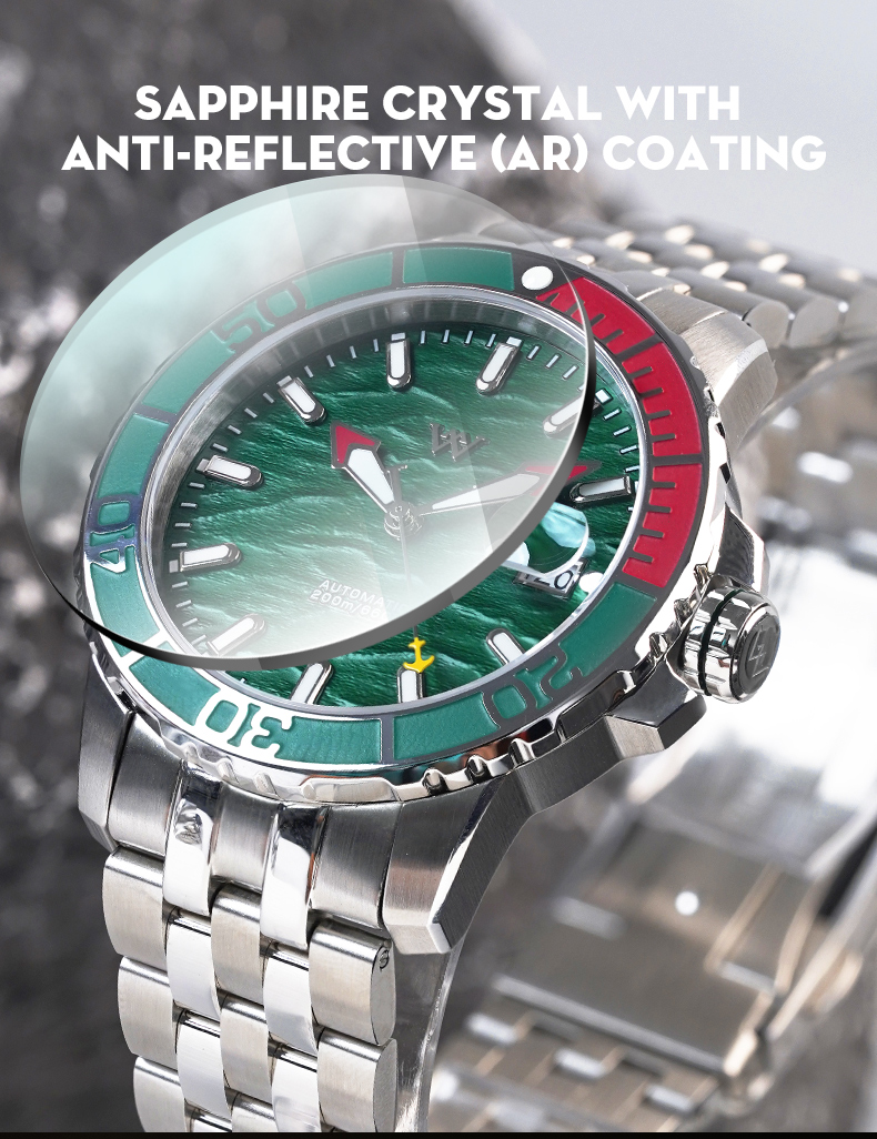 Crystal: Sapphire crystal with anti-reflective (AR) coating