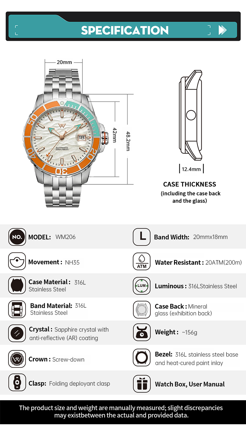 WM206 WM Watch Welly Merck 2026 New NH35 Men's Automatic Mechanical Watch 42mm Sapphire Glass AR Coated 200M Waterproof Watch