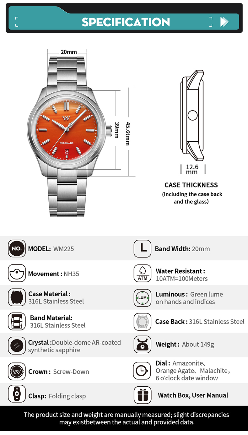WM Watch Automatic Mechanical Watch Gemstone Series NH35 100M Water Resistant AR Coated Sapphire Welly Merck Man Watches WM225